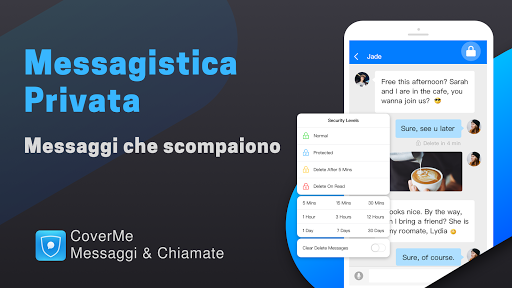 CoverMe consente un controllo totale sulla messaggistica. Saprai subito quando il destinatario ha letto i tuoi messaggi. Puoi impostare i tuoi messaggi in modo che scompaiano una volta letti. Non dovrai mai più preoccuparti che i tuoi messaggi privati possano essere distribuiti o archiviati!