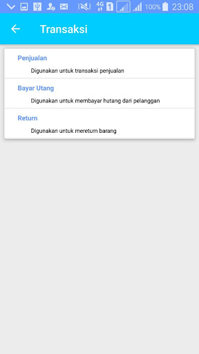 3. Transaksi digunakan untuk proses transaksi penjualan, pembayaran hutang, retur penjualan.