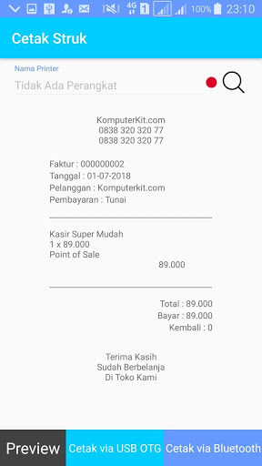 6. CETAK STRUK menggunakan printer bluetooth yang mudah digunakan.