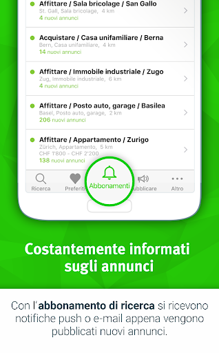• Nessun pericolo di perdere un annuncio: creando un abbonamento di ricerca si possono consultare i risultati su tutti i dispositivi e si ricevono notifiche push non appena viene inserito un annuncio che corrisponde ai criteri indicati