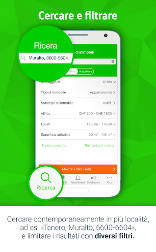 • Una sola app: tutti gli annunci dei principali portali immobiliari (Homegate, Immoscout24, Newhome e più di altri 10) in un’unica app