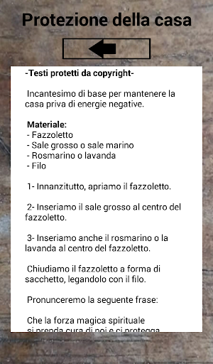 Lo sviluppatore di questa applicazione non è responsabile per un'interpretazione errata degli incantesimi.
