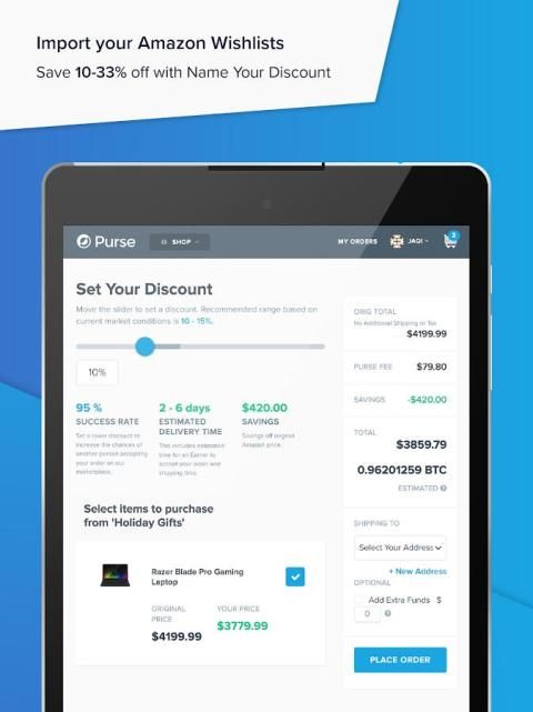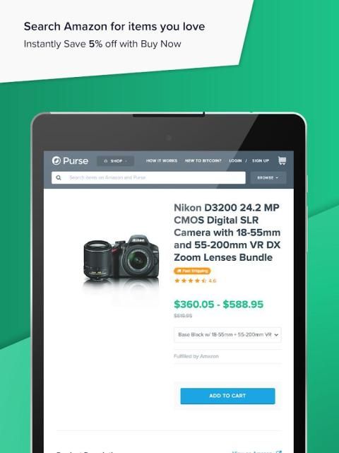 Shop the largest online marketplace in the world with Purse and save 5-30% off your Amazon purchases by using bitcoin. Quickly search for items you love to save 5% instantly, or import a Amazon wishlist and Name Your Discount to save even more. New to bitcoin? Purse can help get you started.