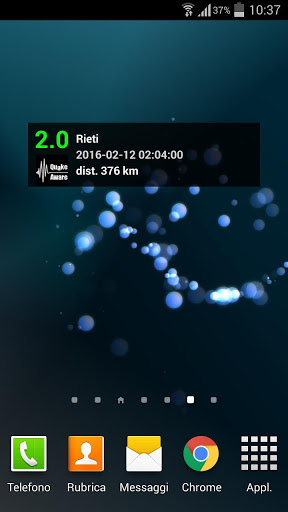 Questa app consente di posizionare un WIDGET sulla vostra pagina principale che visualizza tutte le informazioni relative all'ultimo terremoto rilevato dal servizio sismico impostato.