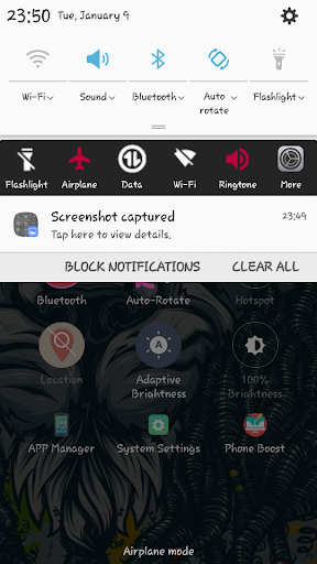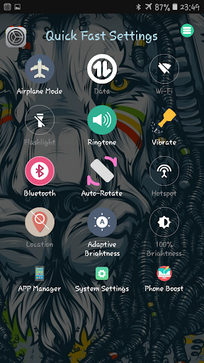 - 16 Toggles (switch) : Wifi, Gps, Bluetooth, Airplane, Autorotate,...