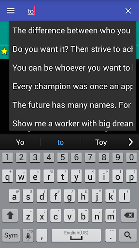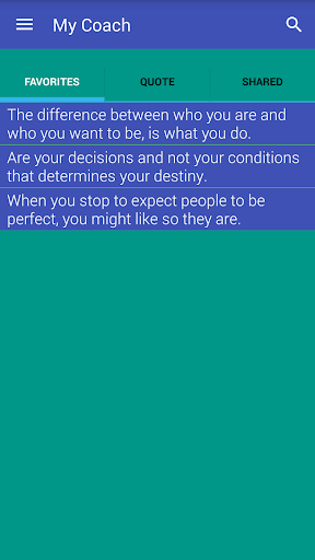 Caratteristiche Toccare per spostarsi tra ciascuna delle virgolette e il doppio tocco per posizionarli comePreferiti Quindi l'icona della stella per rimuovere la preferita ognuna con un clic e la sezione preferita che scorre il dito su ciascuno ottiene lo stesso risultato.