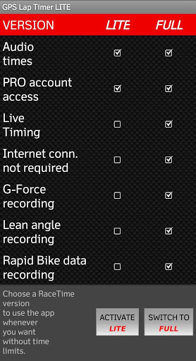 Anche nella versione LITE potrai sfruttare al massimo le potenzialità del tuo smartphone per cronometrare i tuoi giri ed analizzare i dati acquisiti. Con 3 giornate di prova GRATUITE da usare quando vuoi!
