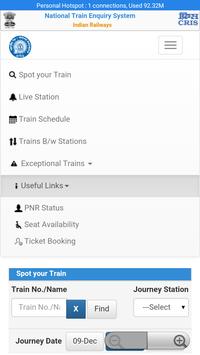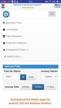 Spot Your Train; Live Station; Trains Between Stations; Train schedule; Trains Cancelled; Rescheduled; Diverted; IR Train Tracker; Rail info live railway track Seat availability