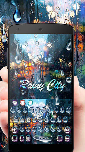 keyboard is a very beautiful romantic Android when you use a typewriter keyboard, think about your words, you can use the real drop keyboard. Upgrade your visual experience because the city after rain is wallpaper, which is very upscale, and the application allows you to simulate the most realistic water droplets in your device. It combines the realistic background of water drops and city lights after rain, neon lights, you click on each button, there will be a drop of water drop for you to export, you want to write.