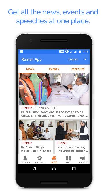 Raman App - The official app of the Chief Minister of Chhattisgarh, Dr. Raman Singh. The Raman App brings to you latest news, events and updates on the State. The Raman App helps you contribute towards developing Credible Chhattisgarh. The Raman App also provides you with a unique opportunity to interact with him. It provides a unique opportunity to receive messages and emails directly from the Chief Minister.