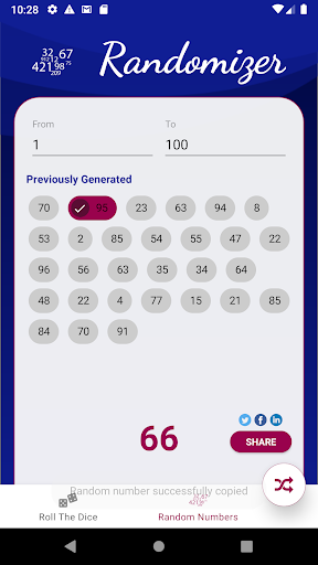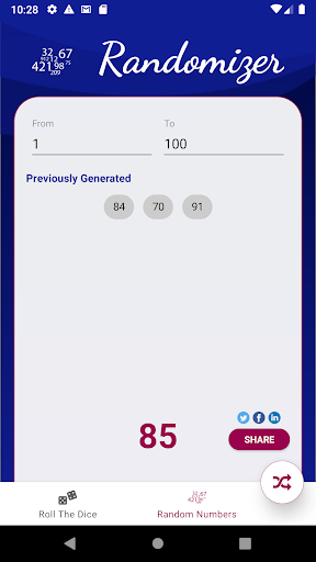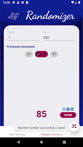 Benvenuto nel randomizzatore! Genera numeri casuali, rotola i dadi e lanciare una moneta.