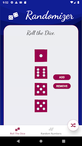 - aggiungere fino a 4 dadi e rotolali per ricevere risultati completamente imparziali.