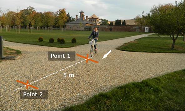 - point the camera to the starting point of the interval you want to measure(point to the ground like in the last image) and click the orange button