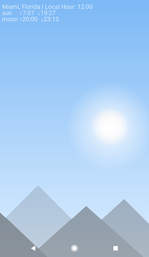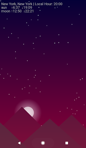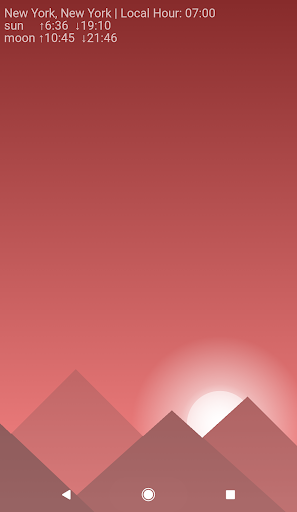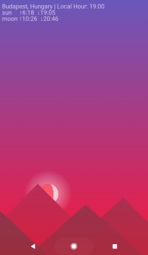 A pleasant and colorful display of the day using real-time data to depict the rising and setting of the sun and moon as well as the current moon phase.