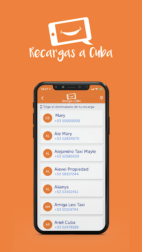 Ricarica di Cuba Non è mai stato così facile. Selezionare il contatto che desideri ricaricare il tuo cellulare direttamente dalla pianificazione dei contatti o inserisci il telefono manualmente.