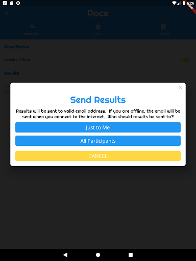 Il timer di gara è lo strumento in-the-the-field da riluttantracer.com un sito che aiuta ad aspirare (o riluttanti) registi di gara con la loro razza da terra con sforzi e spese minimi.Con GARE TIMER puoi creare razze, registrazioni di registrazione e tempo di gara, tutto senza dipendenza da una connessione Internet.Una volta collegati di nuovo tutti i tuoi dati saranno sicuramente sincronizzati nel cloud.I risultati possono anche essere inviati via email a tutti i partecipanti immediatamente dopo la gara.