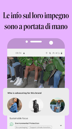Informati sulle azioni che i brand stanno intraprendendo nel loro percorso di sostenibilità e condividi la tua opinione sul possibile greenwashing da parte di alcuni di essi. Tieni traccia dei brand che supporti e dell'impatto che stai ottenendo facendo parte dell'app.