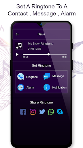 Make new ringtone from song and set as ringtone, alarm, notification tone.