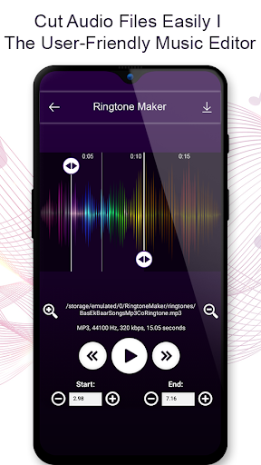Taglia la parte migliore della tua canzone audio e salvalo come tono suoneria / allarme / musica / tono di notifica. propria suonerie mp3 veloci e facili con questo tutto in una nuova app.