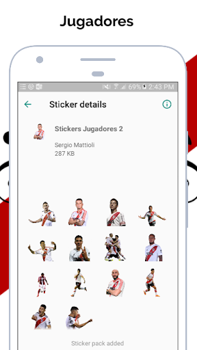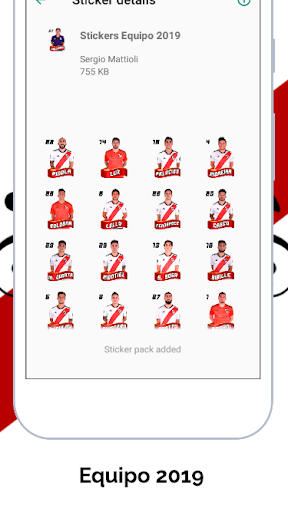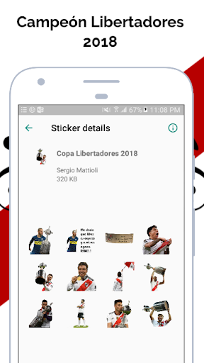 All'interno dell'applicazione troverete adesivi di giocatori fluviali, Mesmes di velocità, campionati, Copa Libertadores, Copa Argentina, direttori tecnici e adesivi relativi ad ogni partita che gioca il più grande. Nuovi pacchetti adesivi ogni volta che giochi una partita!