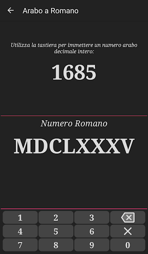 Questa applicazione consente di convertire i numeri arabi in numeri romani e viceversa in modo efficace.