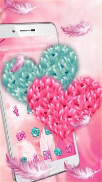 Cuore di piume di rosa Tema è un tema nuovo ed elegante con tutti gli emoji rosa, rosa, rosei, lucenti e belli con la tastiera cuore Girlish Fluffy. Piume roseo Tema progettato per le ragazze che vogliono abbellire il proprio telefono e vogliono portare un look audace ed elegante al loro semplice telefono cellulare oggi. Ha piume blu rosa girly impostate come carta da parati piena di diverse sfumature di capannoni scuri.