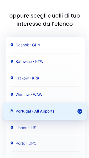 • selezionare tutti gli aeroporti di un Paese come punto di partenza o destinazione;