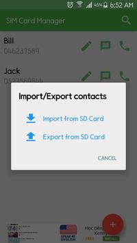 SIM card manager is a tiny tool that reads your SIM card and give you many helpful informations. It also help you to manage contacts in you SIM Card, you can view all your contacts stored on SIM Card, create a new contacts (store to SIM card), modify a contact or delete contact(s).