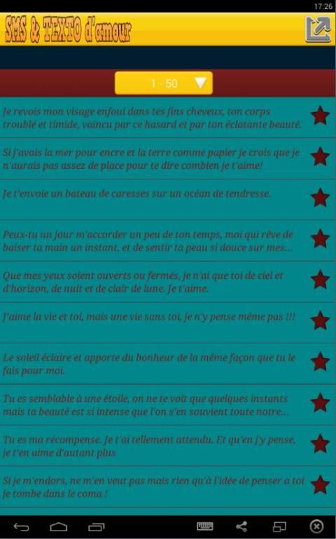 A travers application, vous ne aurez pas besoin de chercher des SMS d'amour d'exprimer vos sentiments à la personne que vous aimez que lorsque vous ouvrez l'application, vous trouverez une liste de messages de choisir ce que vous sentez qu'il exprime vos sentiments..