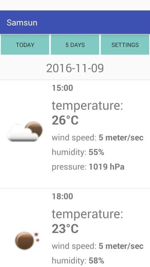 Weather Samsun, a simple and convenient app showing weather forecast for the city of Samsun.