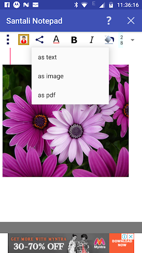 Opzioni per l'invio e la condivisione del contenuto del testo di Santali come immagine è fornita qui.