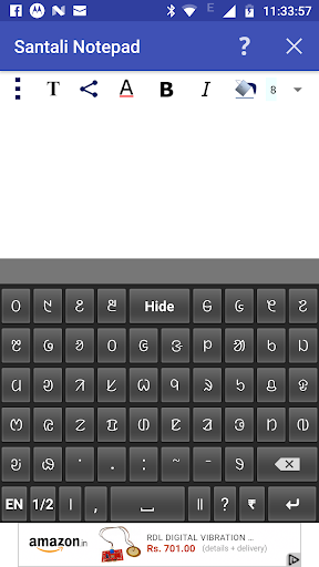 Puoi scrivere, salvare, condividere e inviare i testi di Ol Chiki (OL Cemet ") usando il blocco note di Santali.