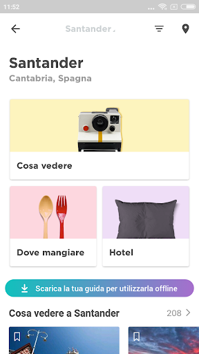 ➢ Scarica le nostre liste per vedere le raccomandazioni e le foto 100% offline. Risparmia sulle tariffe di roaming e scarica la tua guida per Santander prima di uscire di casa.