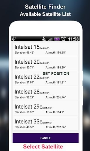 Questa app SATFINDER utilizza il tuo sensore del telefono per ottenere il tuo Azimuth in modo che il calcolo della posizione satellitare dipenda dall'accuratezza dei tuoi sensori mobili.