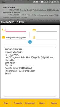 Scan text helps you scan text from image, get text from image, get email, website, phone number, address. This app also helps you translate the text to other languages.