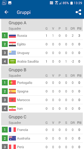 Devi solo riempire i tuoi risultati delle partite e l'applicazione stessa costruisce tutte le tabelle del gruppo e calcola quali squadre andranno ai playoff.