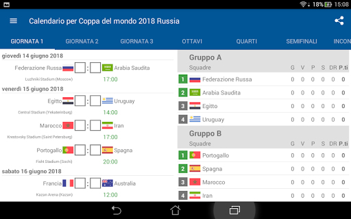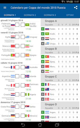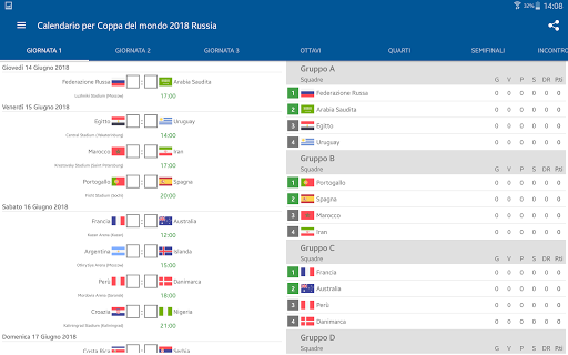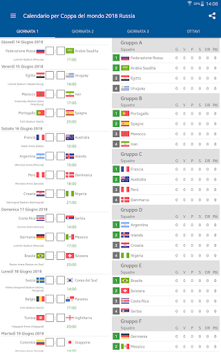 Calendario per Coppa del mondo 2018 Russia è un'applicazione per chiunque ami e sia interessato al calcio.