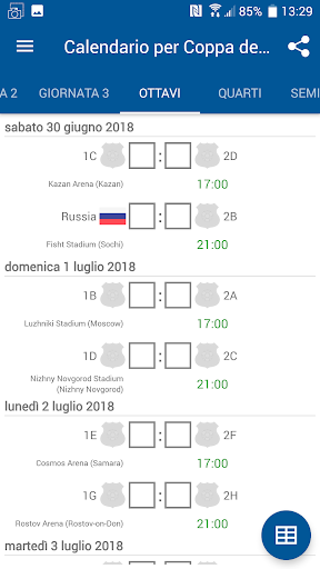 Anche l'applicazione ha l'intero programma di partite (orario e luogo).