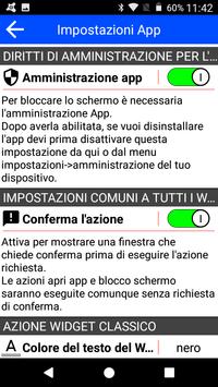 Aprite l'applicazione, andate nel menù impostazioni e configurate il widget per l'azione che preferite tra: