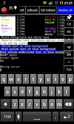 Tutte le esecuzioni investito vt100 input dell'utente terminale accettare e codici esc (colori, bel, movimento del cursore ..)