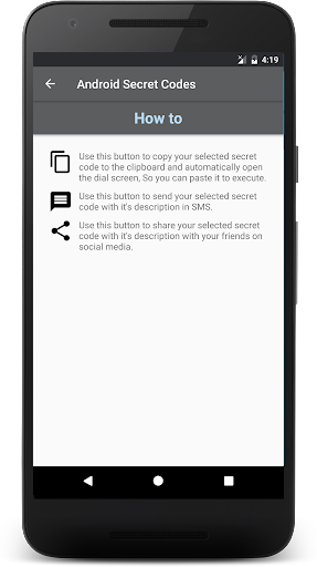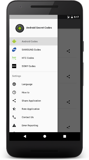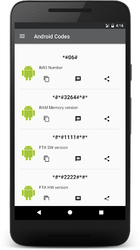 I codici segreti per Android è un'applicazione gratuita da cui è possibile rivedere e utilizzare tutti i codici nascosti, la riservatezza e che funzionino su tutti i sistemi operativi mobili Android. C'è anche un gruppo di codici segreti per Samsung, HTC, Sony, Motorola, LG, Lenovo, OPPO, Xiaomi, telefoni INFINIX.