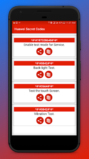 Now You can Discover the secret world of your Android base mobile devices. Some code of them may not work on specific devices, but you can still try them because their manufacturer does not allow them. When those codes are typed manually from the phone dialer or you can copy this code with long press on code and paste it on clipboard. There is also Functionality in the Huawei Secret Codes to share it with Social Apps free and offline.