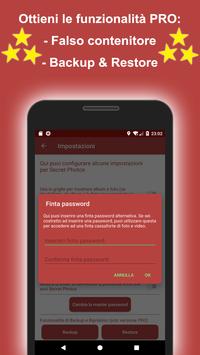 (utile nel caso in cui qualcuno ti costringe ad aprire la tua cassaforte. Potrai digitare una password alternativa, accedendo ad una seconda cassaforte falsa, dove potrai salvare altre foto. In questo modo, nessuno saprà che hai un’altra cassaforte)