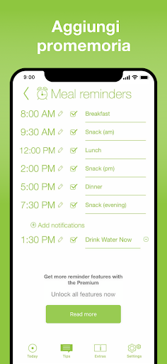 • Avere sotto gli occhi il quadro d'insieme dei propri pasti del giorno