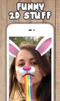 There is a lot sticker's collections : doggy face, cat face, tiger face, rabbit face, and another animal faces. Also included emoji smiley face, snap rainbow, snap text, anime eyes, animal face swap.