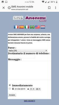 Inviare SMS ANONIMI per fare una sorpresa, scherzo, una dichiarazione amore, provare la fedeltà del vostro coniuge, per intrappolare 1 amico. Invia un messaggino SMS senza lasciare nessuna traccia ne prova...