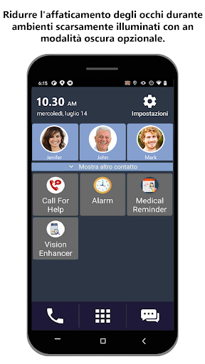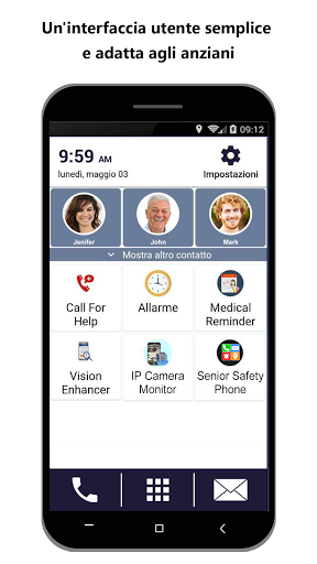 Dai al tuo smartphone un aspetto completamente nuovo. Grandi pulsanti per aiutare quelle mani anziane. Accesso con un solo tocco ai contatti chiamati più di frequente. Tutte le nozioni di base per effettuare chiamate, ricevere e inviare messaggi di testo sono semplicemente rese senza stress .