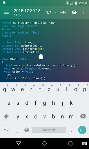Alcuni dispositivi limitano l'utilizzo della GPU per consumare meno energia quando non collegato. Controllare sempre le prestazioni con il morbido Tastiera nascosta e il cavo di alimentazione spento. Uno shader dovrebbe fare almeno circa 30 fps per non rallentare l'interfaccia utente se si intende usarlo come sfondo dal vivo.