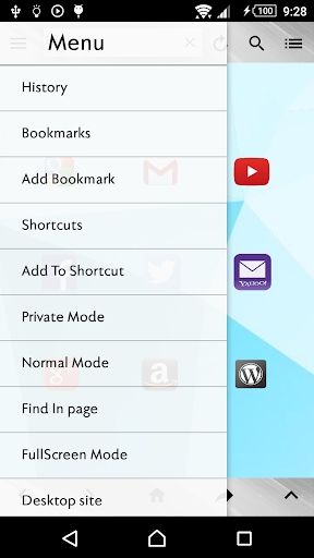 Shadow Browser has a shortcut where you can keep list of websites which you visit frequently.It also has shortcut icon on the home screen which provides quick access to history,bookmarks.