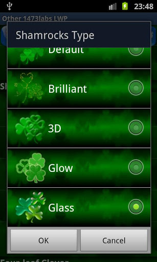 -you puoi cambiare il tipo di shamrocks che vaga sullo schermo: predefinito, Brillante, 3D e incandescente.